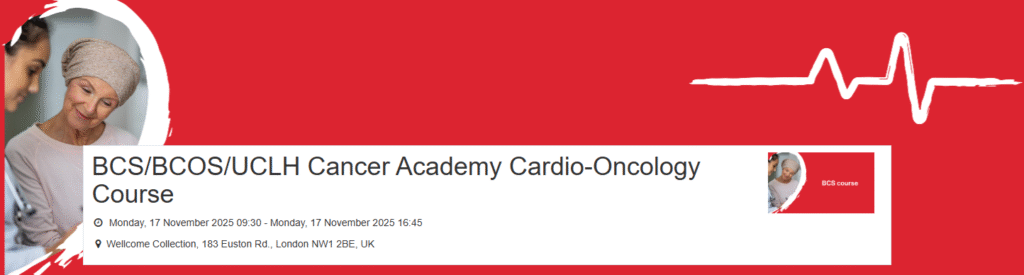 This joint British Cardiovascular Society, British Cardio-Oncology Society and University College London Hospitals Cancer Academy course will give the attendee an update in contemporary cardio-oncology practice and will cover recent updates in cardio-oncology. A multidisciplinary practical approach to common cardiac issues in oncology/haem-oncology patients will be explored.